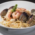 We started with the Prosciutto Wrapped Mozzarella–crispy, creamy, and drizzled with the perfect amount of balsamic. For the main course, I had the Seafood Linguine and was blown away. The prawns, clams, and scallops were super fresh and the basil cream sauce was rich and flavorful. (April 2025)